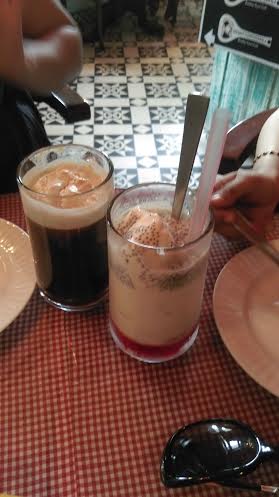 Not that shopping was too tiring, but all of us felt a need to eat again! LOL! So we all decided to check out Soda Bottle Opener wala! After a few minutes of waiting, we all sat down at table 7. We started with a ‘BEER TOWER of 2 ltrs’ followed by Irish coffee, Irani Faluda and Raspberry Falooda. We have a huge appetite, isn’t it 😉