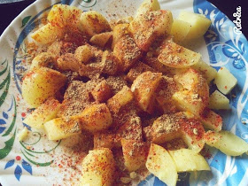 Mix all spices except coriander powder with boiled potato cubes in a tray and keep aside