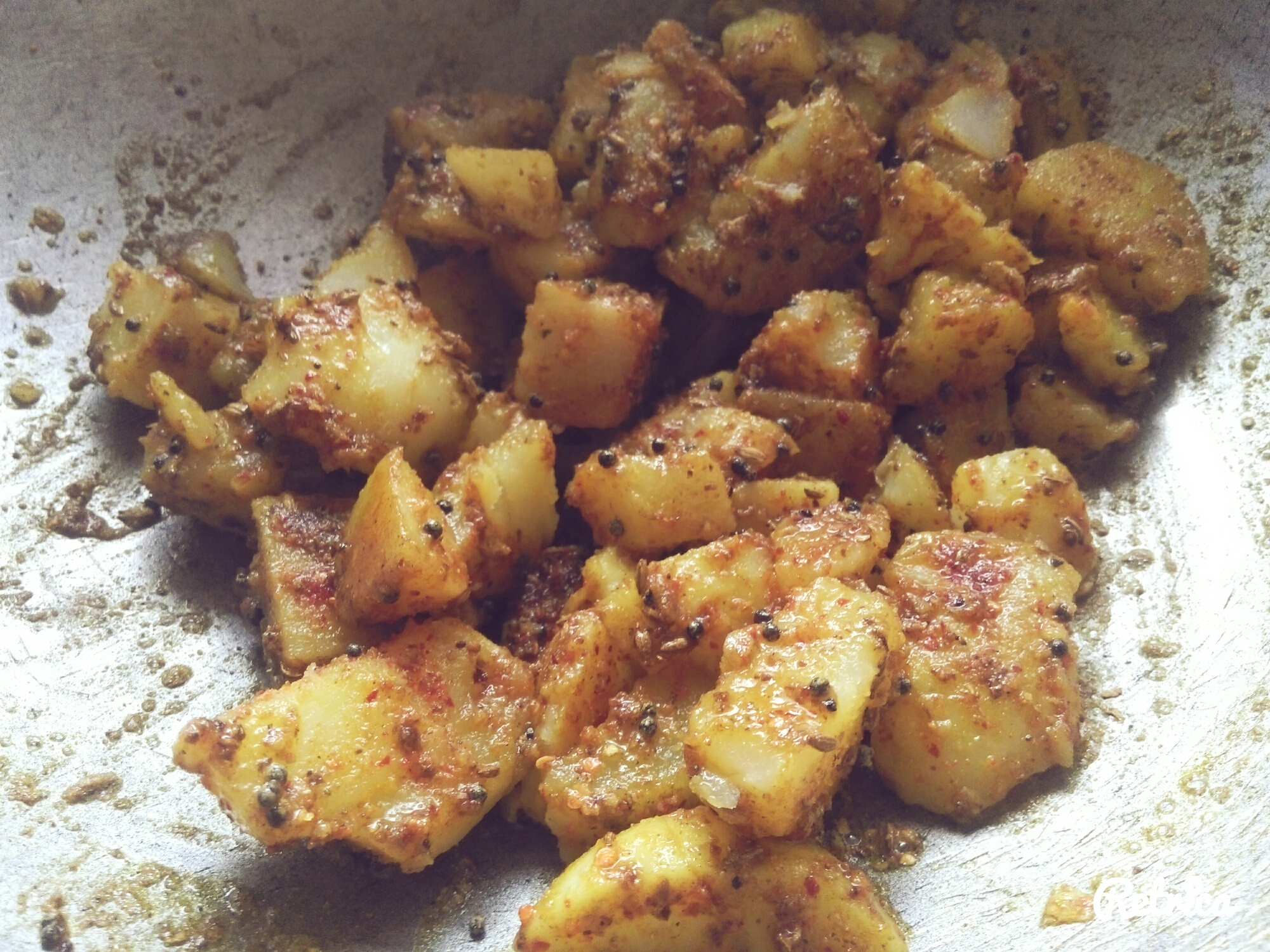 2.Add the marinated potatoes and mix it well. Cover it with a lid and cook on low flame for 7-8 minutes.