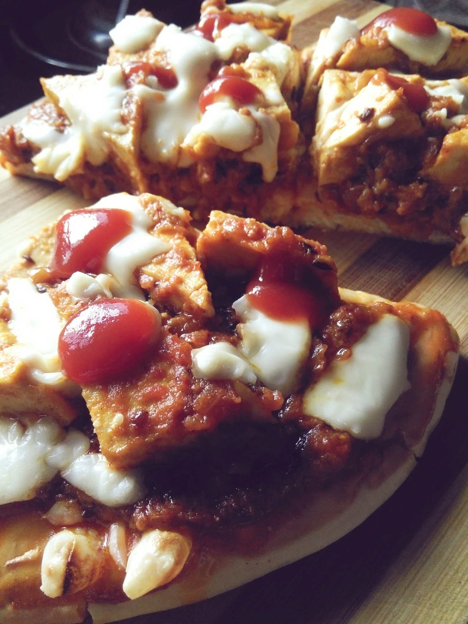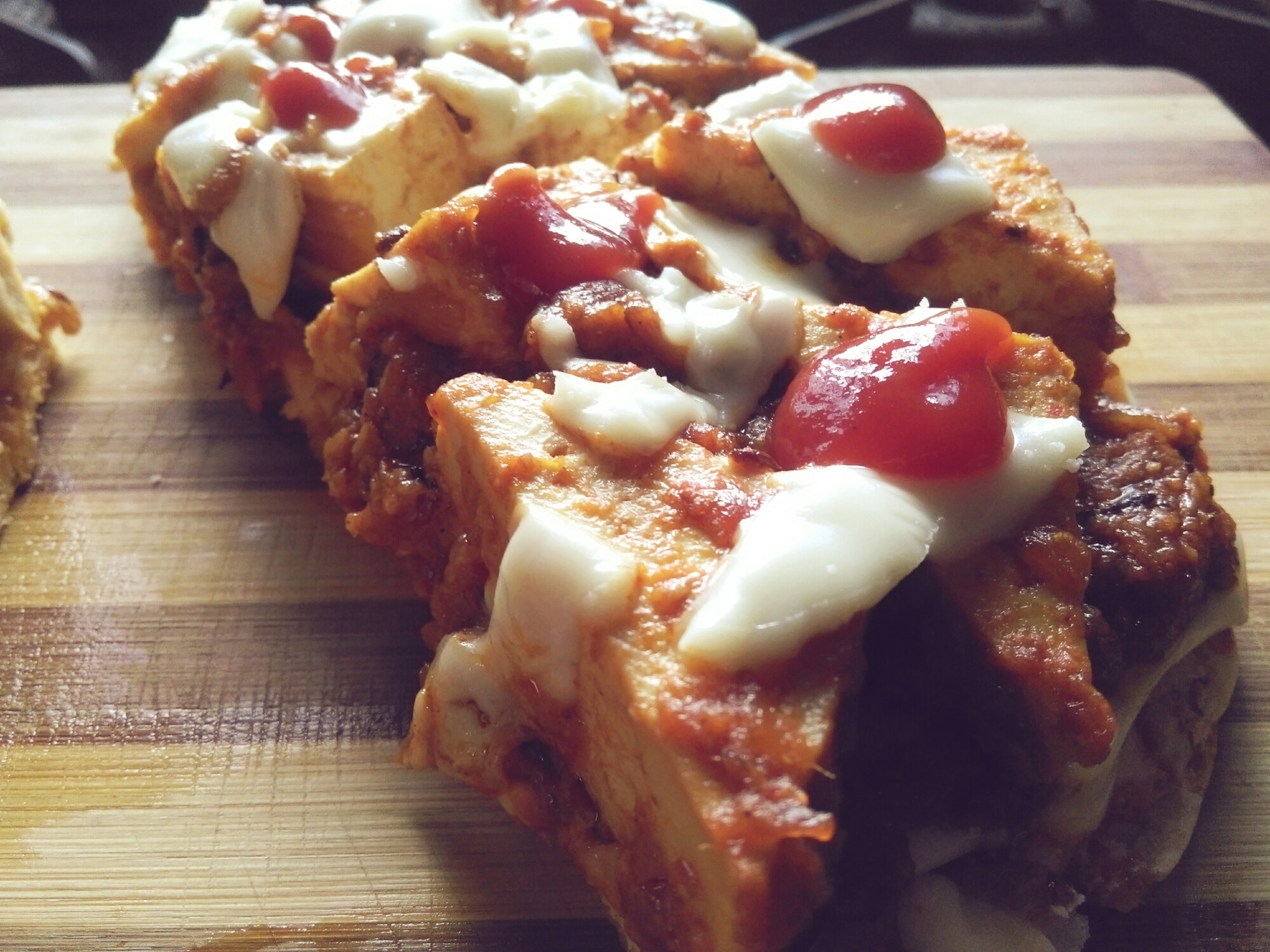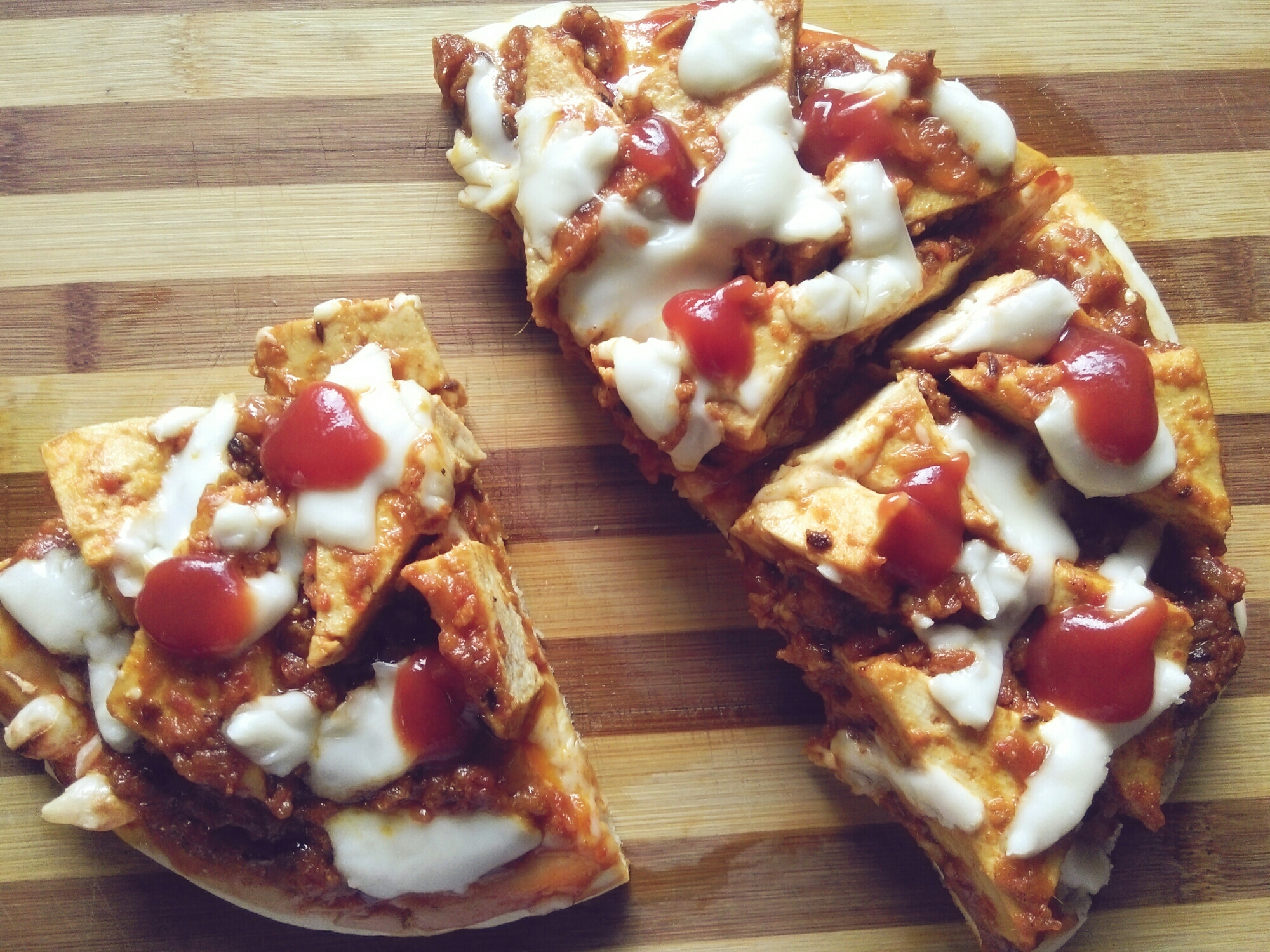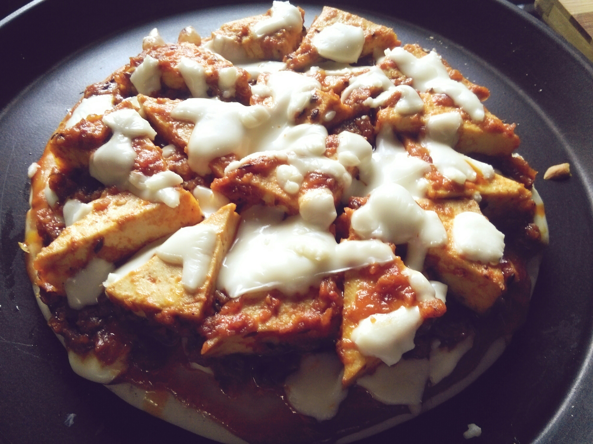 2. Now Add Tofu ki Sabji evenly spread then add cheese.