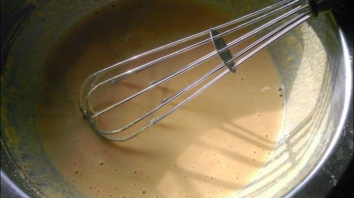 3. Make a batter of gram flour and water with a thick consistency.