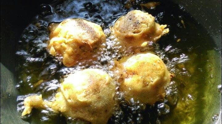 5. Coat the potato balls in batter with the help of fork and deep fry it until golden brown.