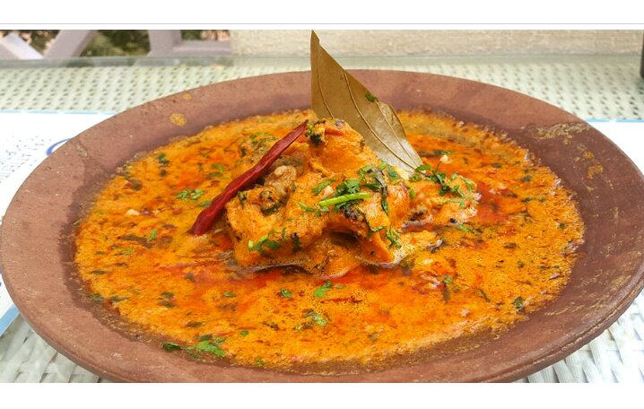 After this wonderful dish I wanted to have something in chicken and ordered SPICY CHICKEN IN GEORGIAN NUT SAUCE (Rs.600/+++) – The roasted succulent chicken pieces were dipped in a cashew based flavourful spicy gravy served in an earthen pot (traditional serving) with a combo of BUTTERED GOVINDBHOG (west bengals traditional fragrant rice) (Rs.150/+++) served with mustered paste on top n green chilli, Bengalis will always recommend rice with all the gravy item and which is meant to be an excellent combination.