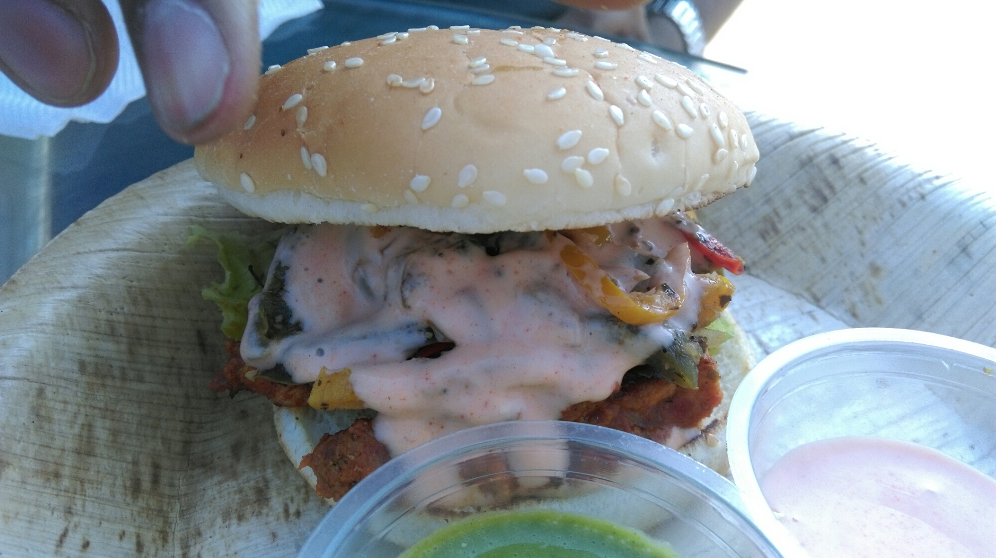 I had butter chicken burger and laal maas taco. Well food truck concept is really good and this truck designed very well but, if i talk about food quality – 1st i order butter chicken burger i was expecting it will be tandoori chicken in butter chicken sauce but its different they use bonless chicken and stir fry with some vegs like yellow and red capsicum taste was good quality of food also good but i dont think so the name matched with this burger. Second i order laal maas taco it was minced mutton like a keema filled in taco thats it there is no flavour of laal maas i was expecting mutton tikka pcs cooked in laal maas gravy but its different taste was okok not worth it. My total bill was 474Rs after having all this still my tummy was empty. @Forklicious