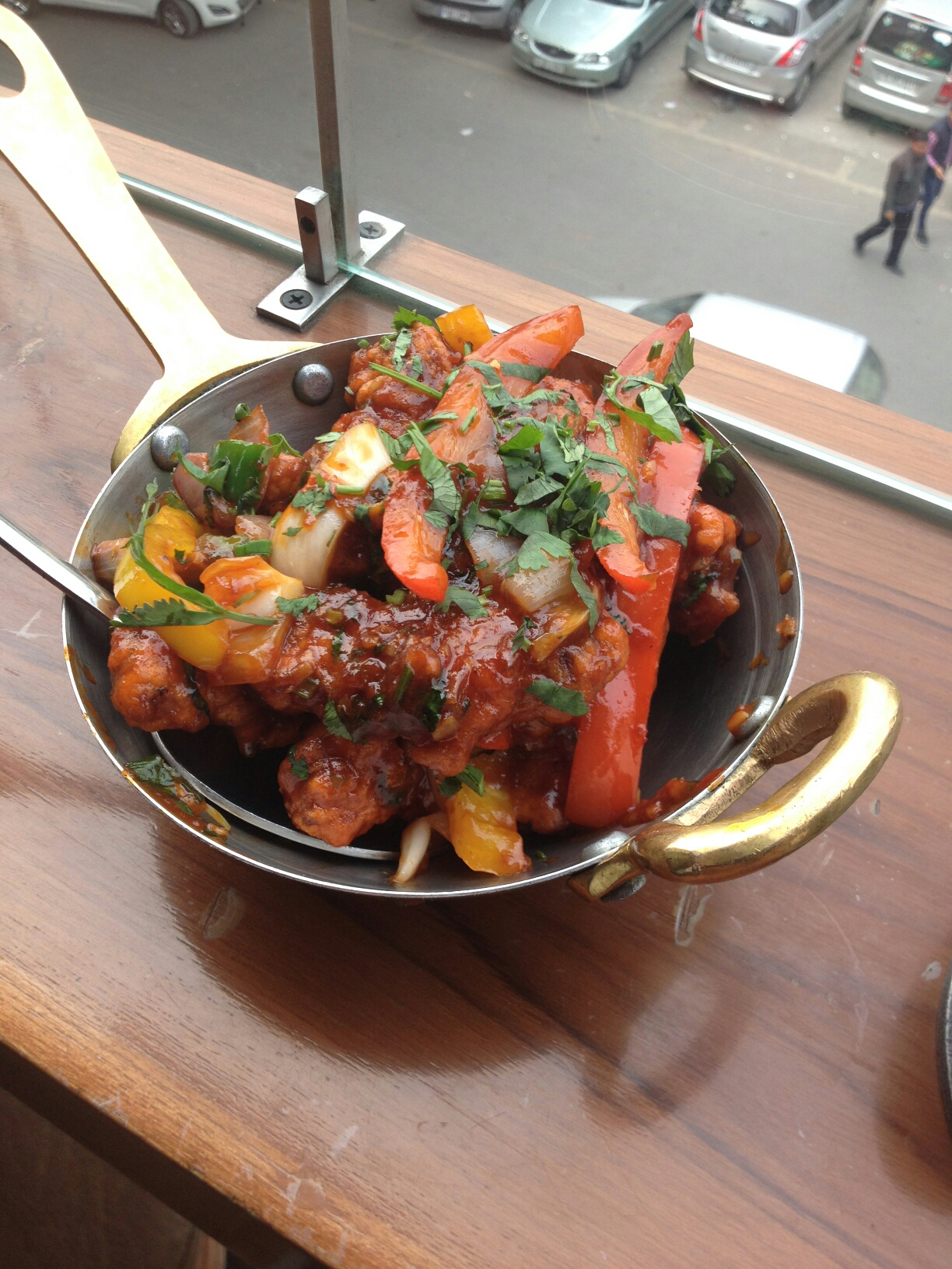 – Chilly Paneer: Mowglee ka Chilly Paneer as per menu Served in small karahi,tossed in veggies with good amount of spices, makes it good to order.