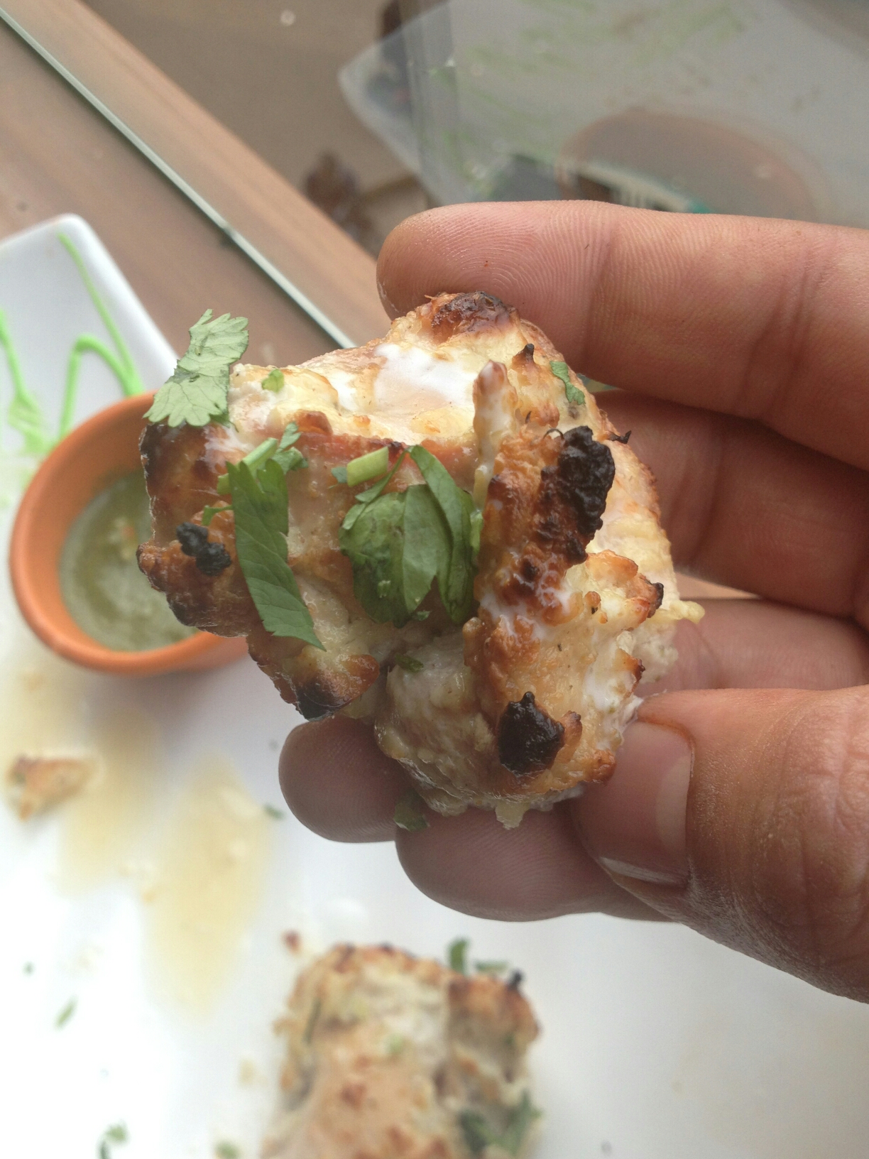 – Dimsums: Tandoori Chicken dimsum /Bruclee ke tandoori dimsum as per the menu , filled with minced chicken and covered with a paste before putting them in the tandoor. Less of spice and Perfectly cooked.