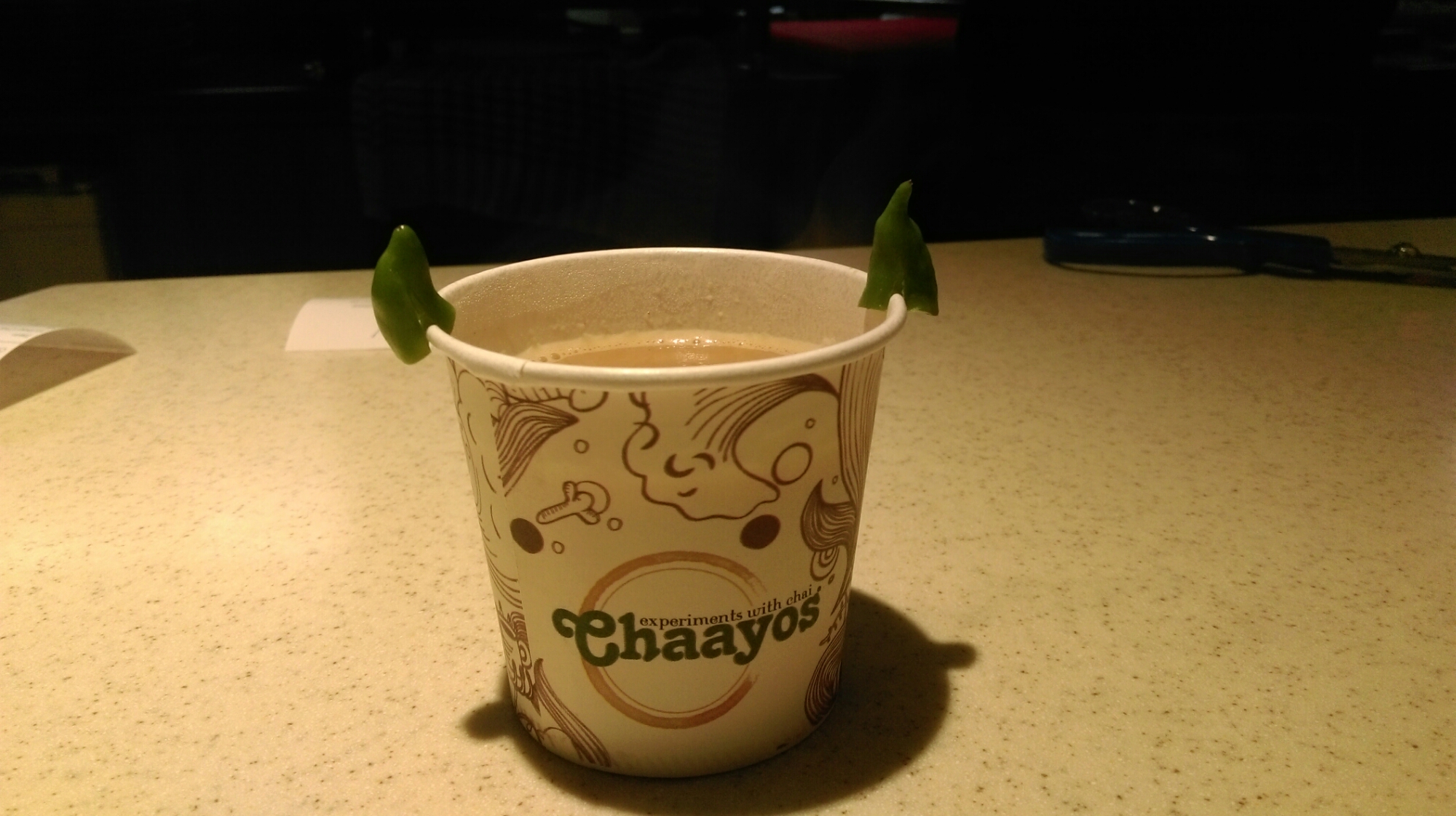 # Aam papad Chai : was a hot tea without milk and had a mild taste of aam papad. I liked it