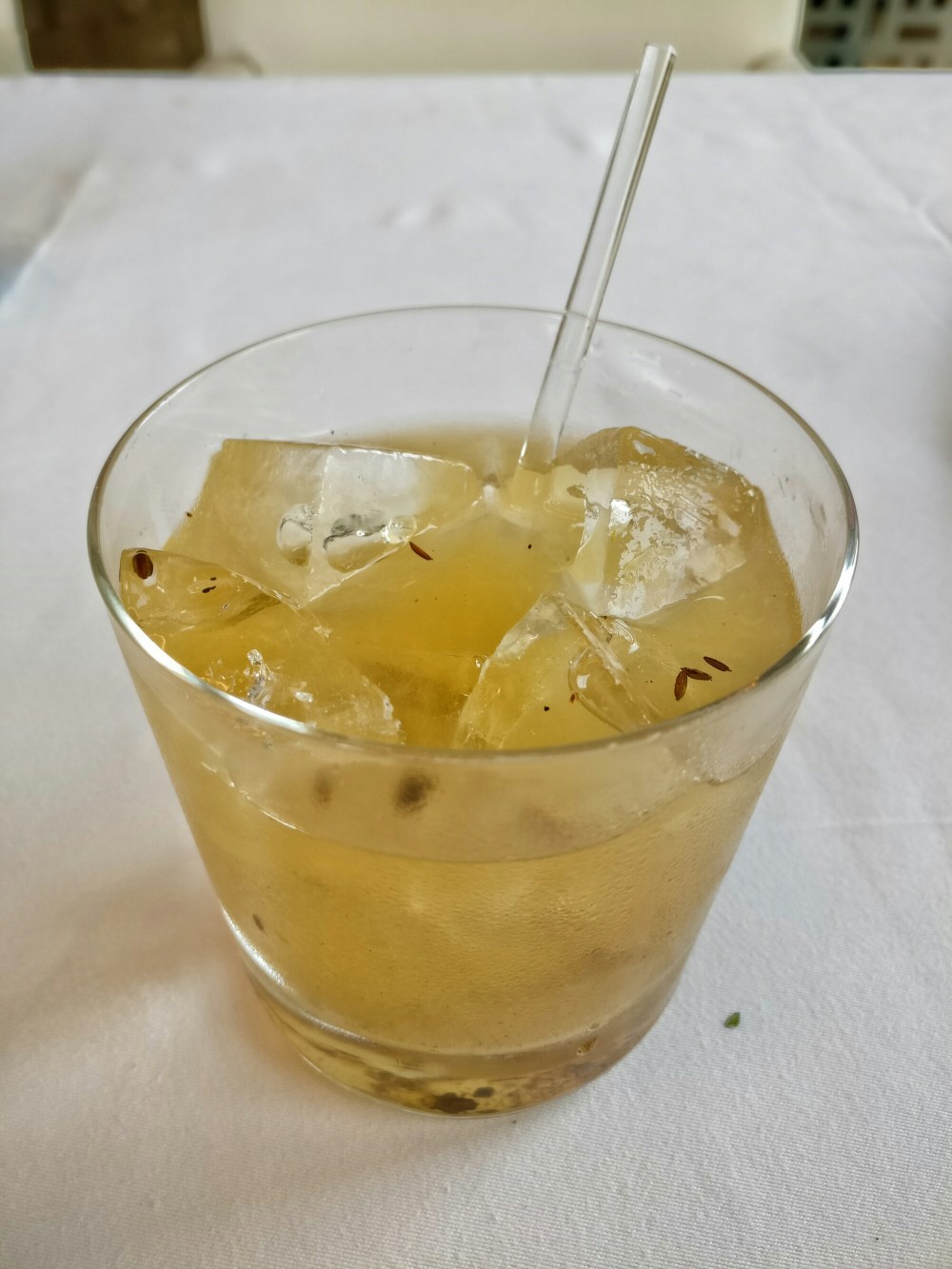I started with Jaam-E-Gulgul, a cocktail made of cumin, jal jeera and whisky which is completely different from the usual.