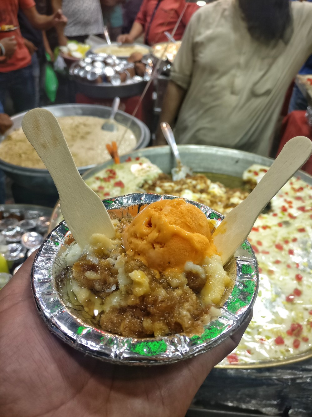 1. Lotan Ke Chole Kulche– A place serving world’s most amazing chole since 1920 for 3 generations now in a narrow, tiny lane of Chandni chowk every morning without a fail. It is a personal recommendation to all those reading this, each bite will satisfy every taste bud of yours. Here, chole are scooped out of a copper vessel topped with aloo, a secret masala which makes it super spicy, aamchur chutney, a sprinkle of garam masaala and lastly the signature coriander and ginger garnish, served with a plate of kulcha. It is the most soulful breakfast you can imagine.