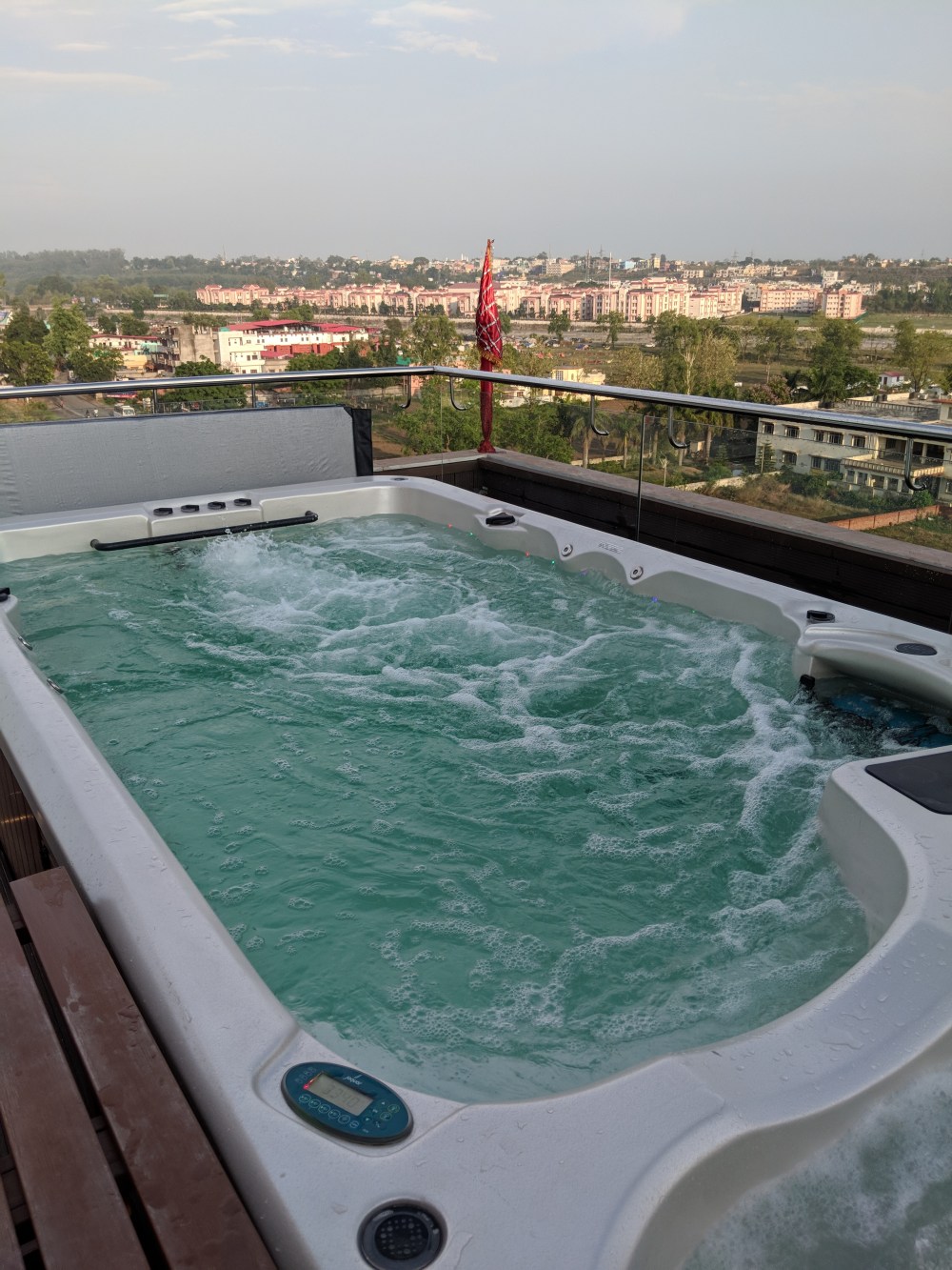 venue has majestic views of the Shivalik range and the city, a swim hydrozone and jacuzzi,